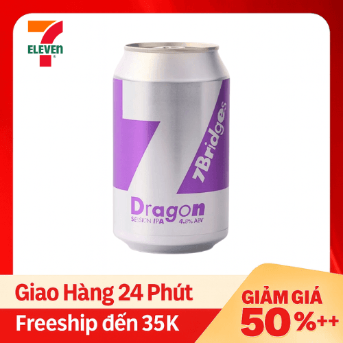 "Sản phẩm: Bia 7Bridge Dragon Session IPA Lon 330ml Nhà sản xuất/Nhập khẩu: CÔNG TY TNHH SEVEN BRIDGES Địa chỉ: Đường Việt Bắc - Lô 03 B2.34 Khu TĐC Tân Trà, Phường Hòa Hải, Quận Ngũ Hành Sơn, Thành Phố Đà Nẵng, Việt Nam Xuất Xứ: Viet Nam Nồng độ cồn: 4.8 độ 1. Người dưới 18 tuổi không được uống rượu, bia; 2. Uống rượu, bia có thể gây tai nạn giao thông; 3. Uống rượu, bia có thể ảnh hưởng đến sức khỏe thai nhi."
