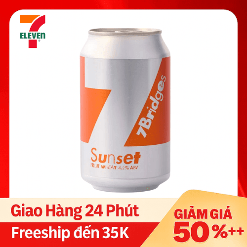 "Sản phẩm: Bia 7Bridge Sunset Fruit Wheat 330ml Nhà sản xuất/Nhập khẩu: CÔNG TY TNHH SEVEN BRIDGES Địa chỉ: Đường Việt Bắc - Lô 03 B2.34 Khu TĐC Tân Trà, Phường Hòa Hải, Quận Ngũ Hành Sơn, Thành Phố Đà Nẵng, Việt Nam Xuất Xứ: Viet Nam Nồng độ cồn: 4.2 độ 1. Người dưới 18 tuổi không được uống rượu, bia; 2. Uống rượu, bia có thể gây tai nạn giao thông; 3. Uống rượu, bia có thể ảnh hưởng đến sức khỏe thai nhi."